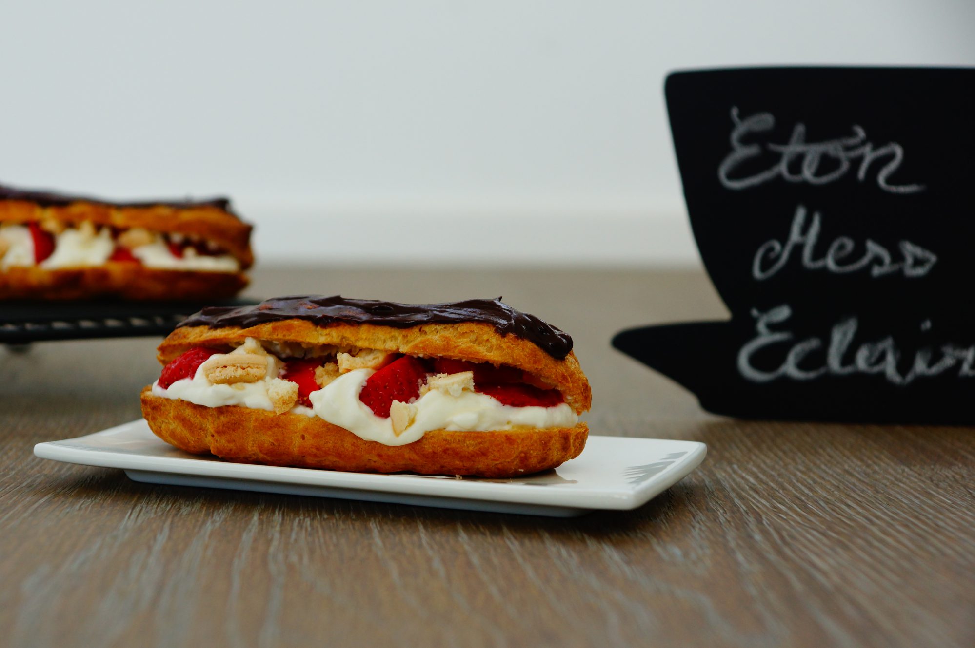 I know that Eton Mess is a thing from England, but since my England experience is limited (only been there on student exchange for a bit) and I first got to know Eton Mess in Ireland, I thought this to be the perfect mashup for the game: French Eclairs as a vessel for a dessert you find on a lot of Irish menus, topped with some Belgian chocolate. When the pastry calls, I need to answer. So proudly presenting you todays culinary endavours, including my first attempt on choux pastry.